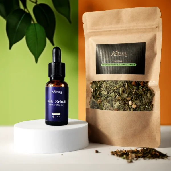 • Huile sublinguale Sérénuit 30 ml : une formule naturelle alliant CBD et mélatonine, conçue pour favoriser l’endormissement et améliorer la qualité du sommeil, sans accoutumance. En savoir plus sur Sérénuit ici.